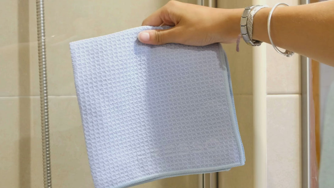 Toalha de microfibra para limpar superfícies de vidro.